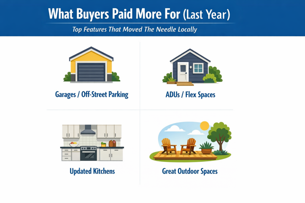 A quick breakdown of which features actually moved the needle locally: garages, ADUs, renovated kitchens, outdoor space, etc. Bonus: call out what didn’t matter as much.